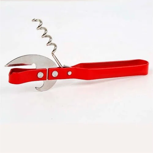 Abrelatas, destapador y descorchador 3 en 1.