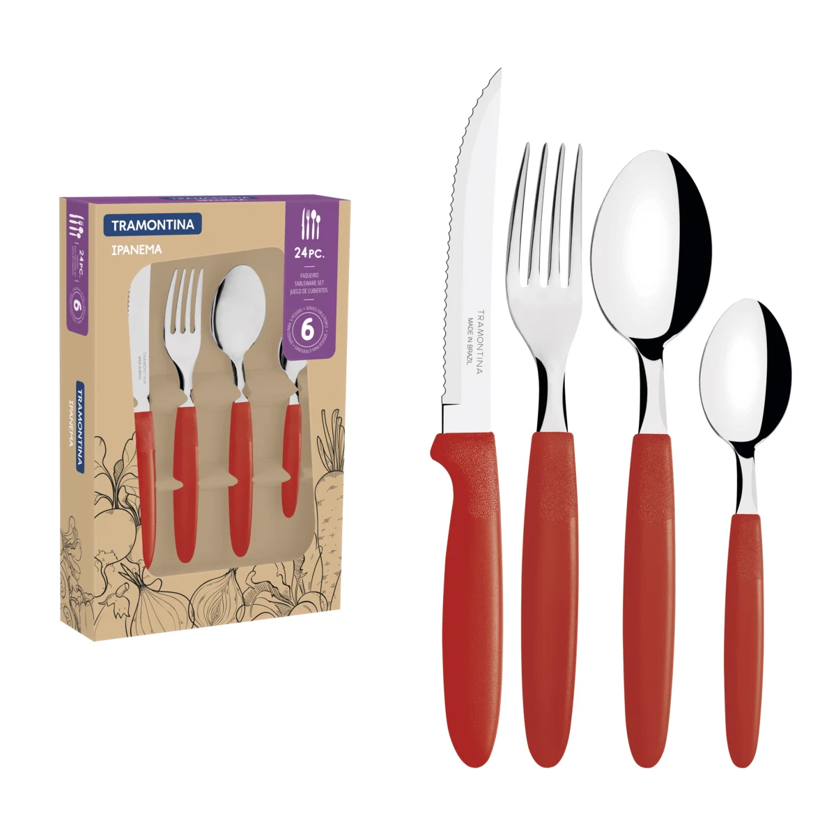 Juego De Cubiertos Tramontina Ipanema 24 Piezas Rojo