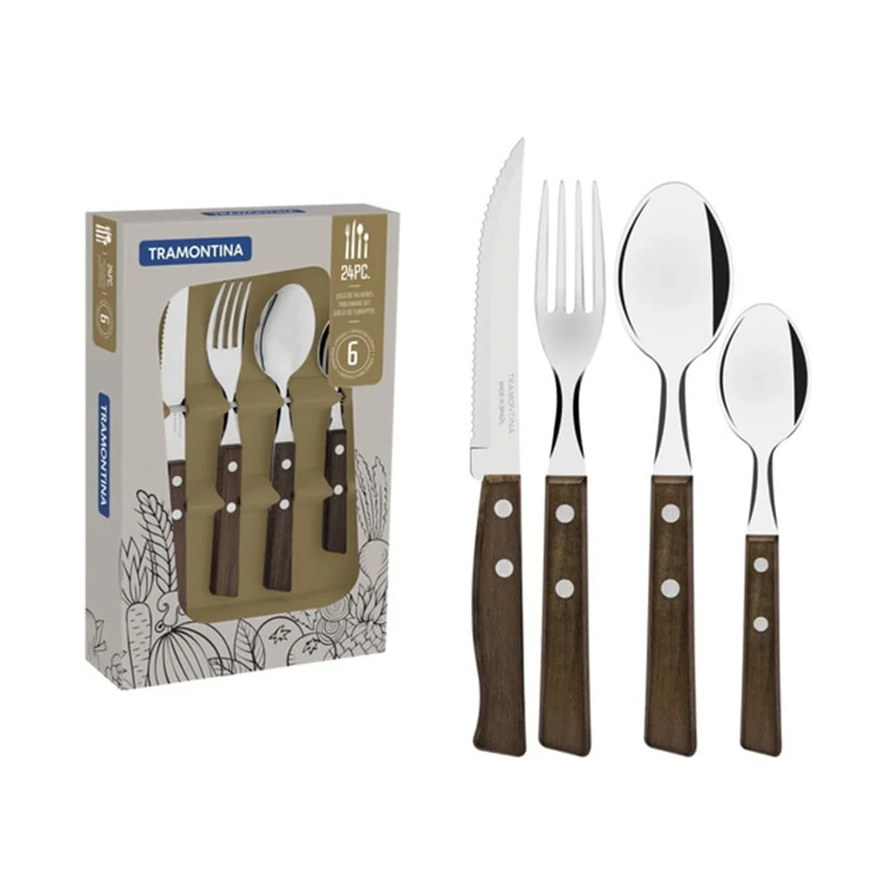 Juego De Cubiertos Tramontina Madera 24 Piezas Tradicional