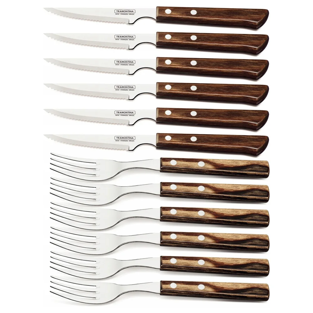 Juego De Cubiertos Tramontina Polywood Asado Madera 12 Pz