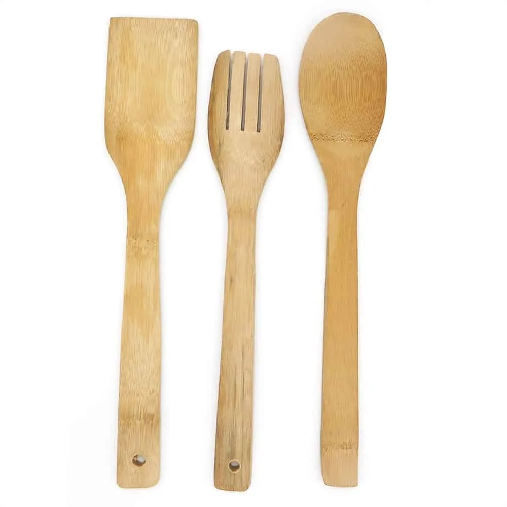 Juego De Menage Bambu Madera Espatula Cucharon 3 Piezas