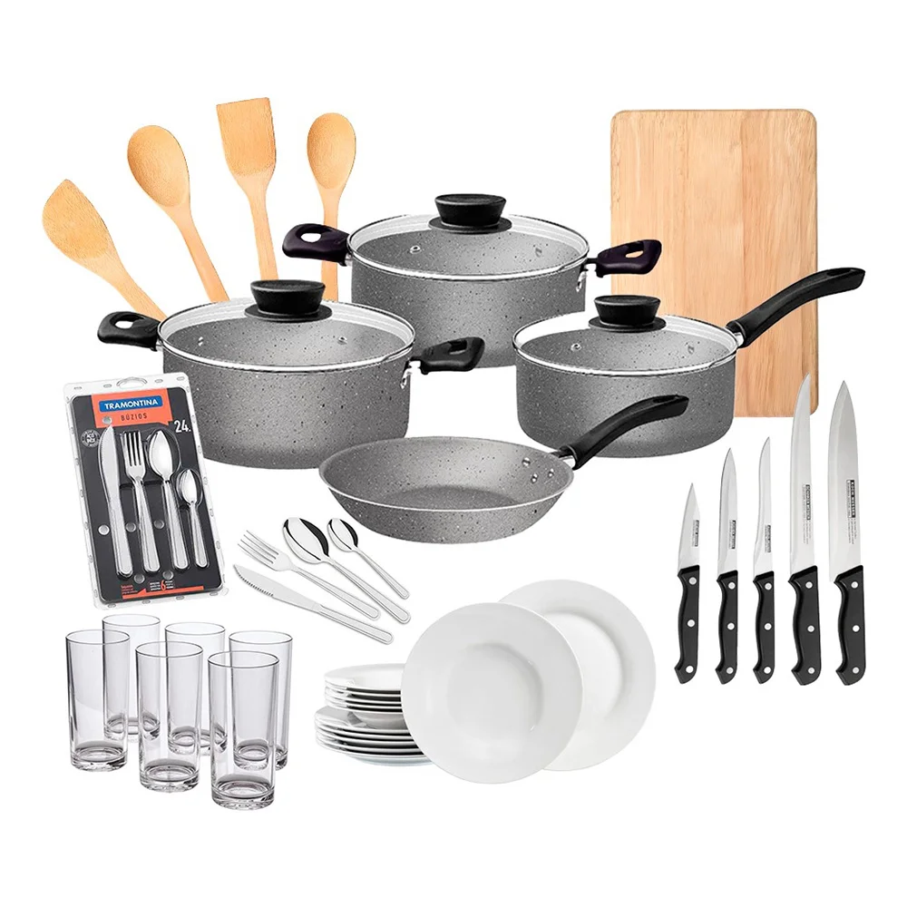 Juego De Ollas Cocina Batería Tramontina 56 Piezas Cubiertos