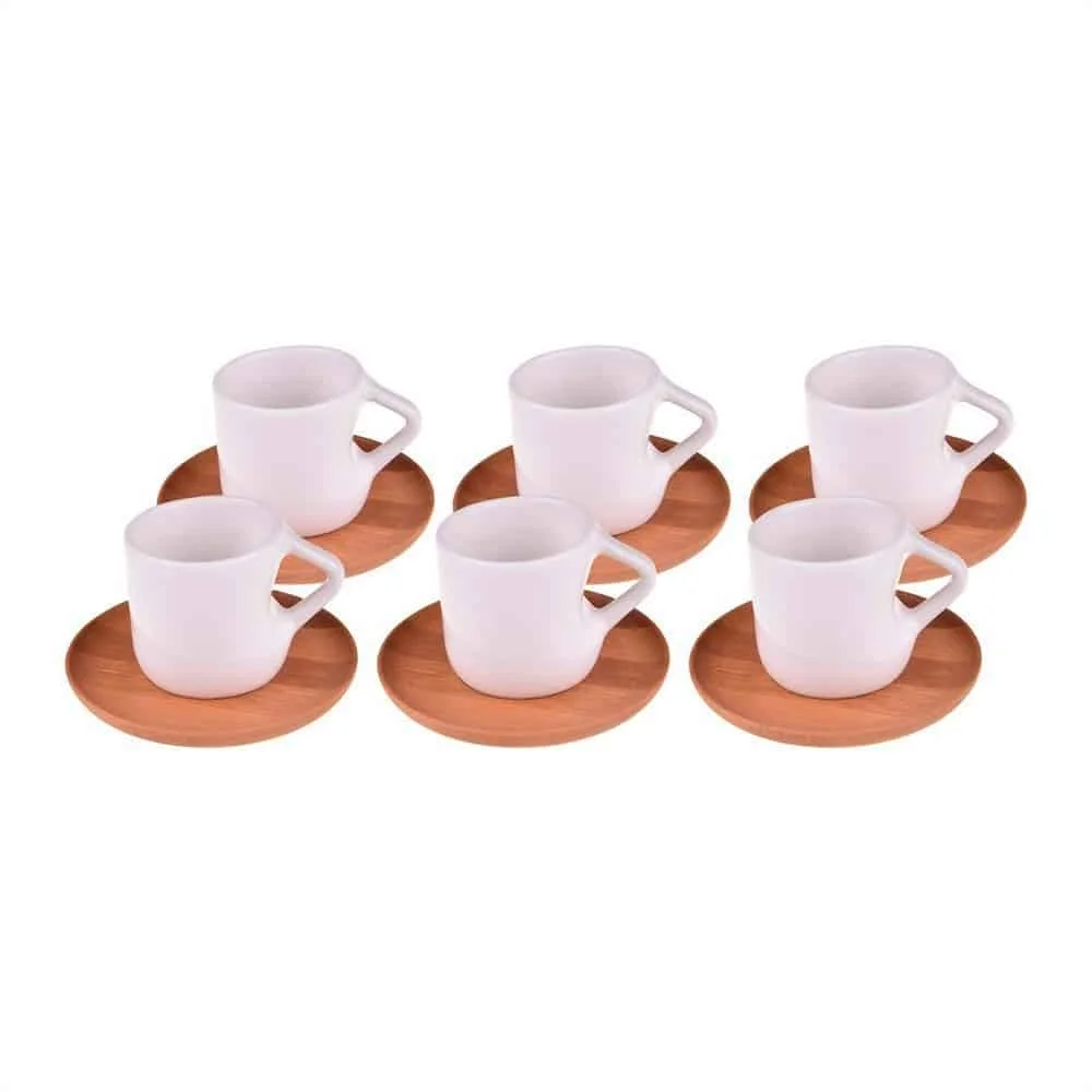 Juego Taza Cafe Porcelana Con Platillo Bambu 12 Piezas