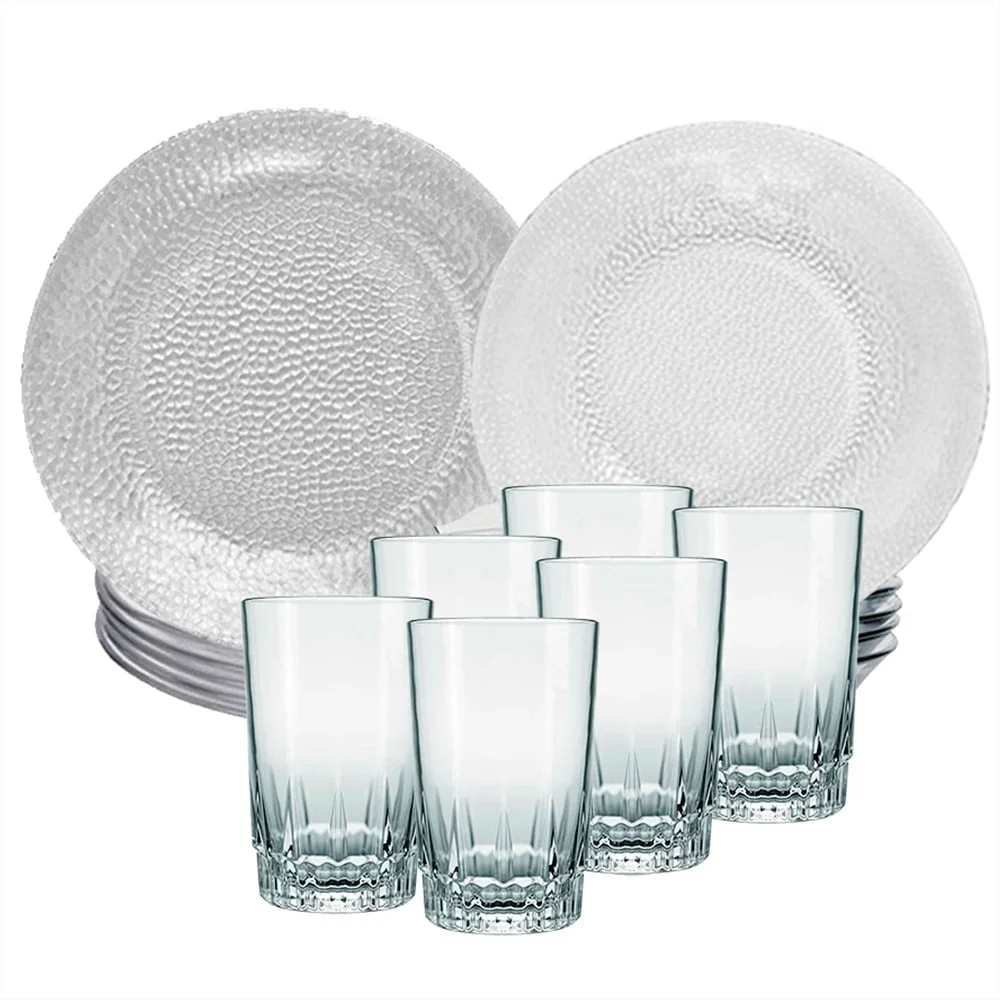 Juego Vajilla 18 Piezas Plato Llano Hondo Vasos Vidrio