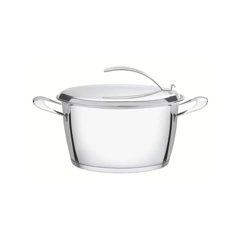 El fondo triple (acero inoxidable + aluminio + acero inoxidable) distribuye el calor uniformemente, proporcionando una cocción más rápida y uniforme,
