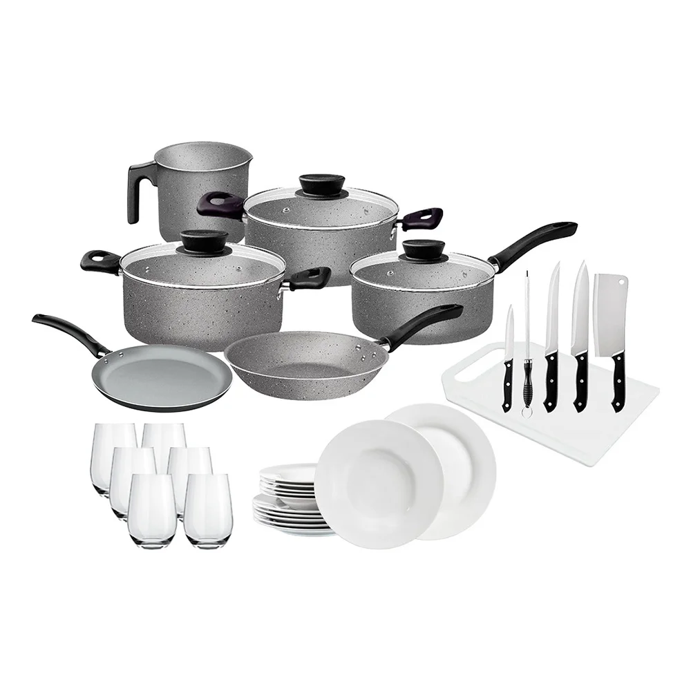 Ollas De Cocina Juego Tramontina Vasos Platos Ceramica 33 Pz