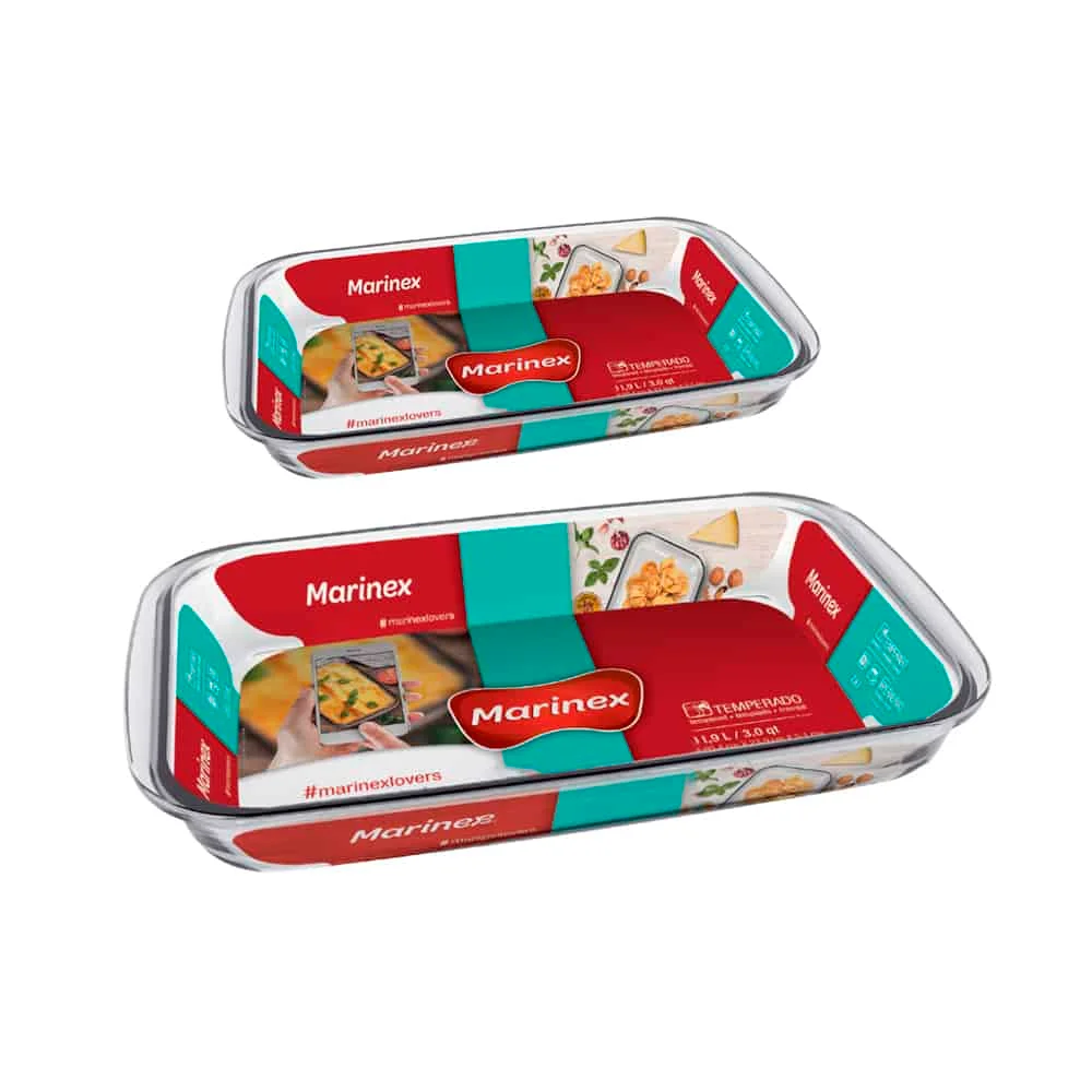 Set Asaderas Vidrio Marinex Rectangular Horno 2 Piezas