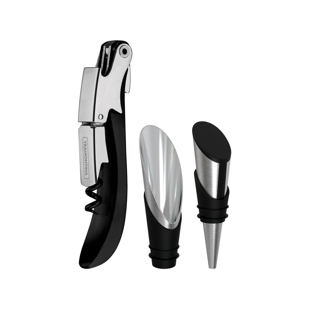 Juego para Vinos Tramontina Harmoniza en Acero Inoxidable y Polipropileno Negro 3 Piezas