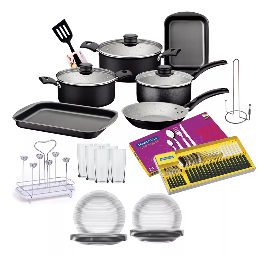 Set Vajilla 54 Piezas Ollas Tramontina Platos Vasos Cubierto
