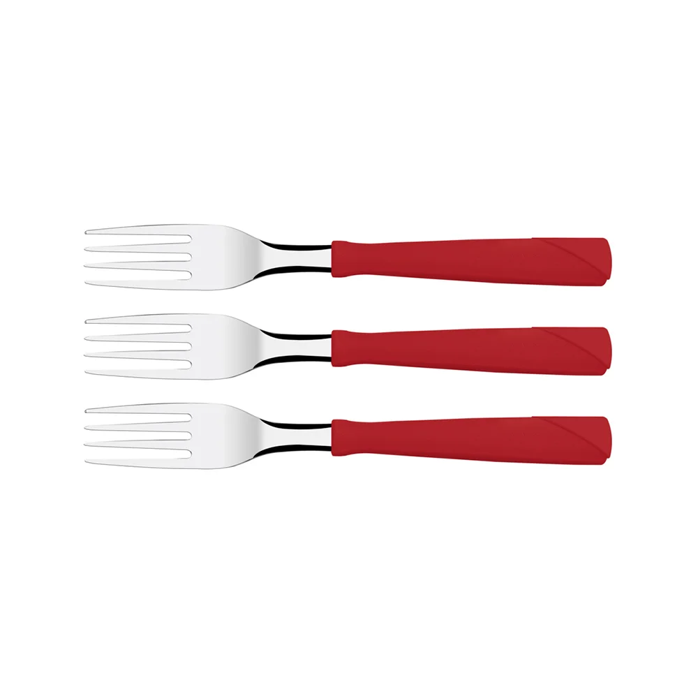 Juego de Tenedores de Mesa Tramontina New Kolor con Láminas de Acero Inoxidable y Mangos de Polipropileno Rojo 3 Piezas