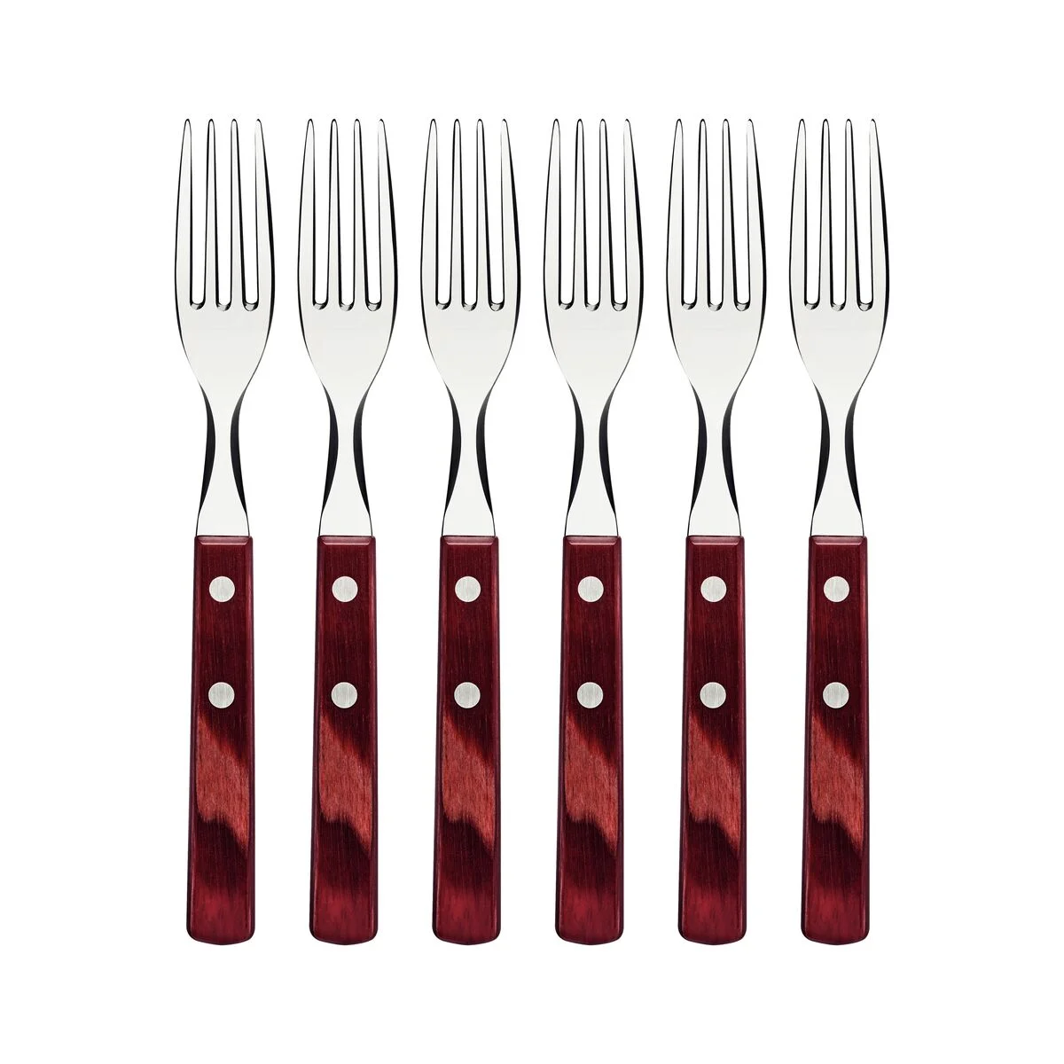 Juego de Tenedores de Mesa Tramontina con Láminas de Acero Inoxidable y Mangos de Madera Tratada Polywood Rojo 6 Piezas