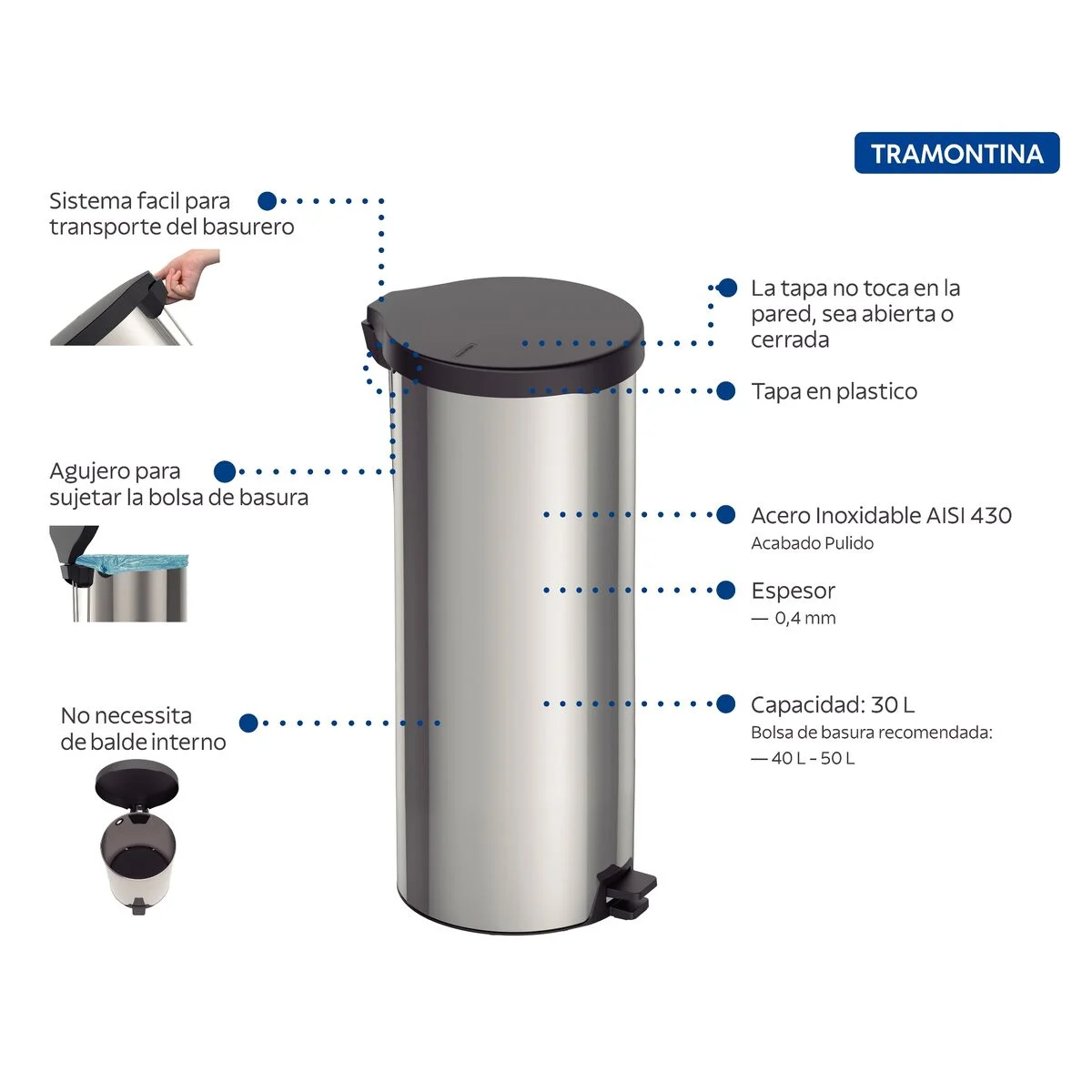 Bolsa de basura recomendada: 40 – 60 L