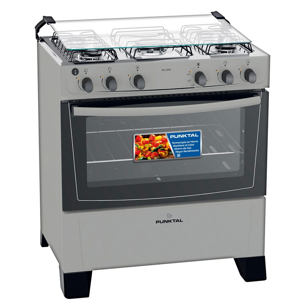 Cocina PK-299C – 5 Hornallas a Gas con Mega Llama, Horno 86,5L y Diseño Titanium