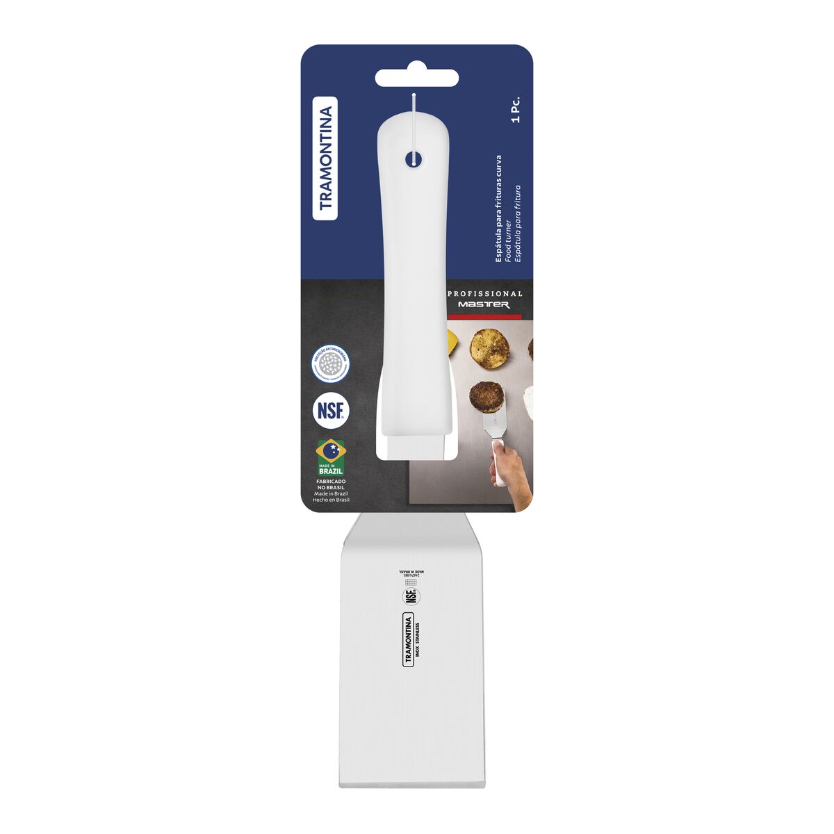 Espátula para Frituras Tramontina Profesional con Lámina en Acero Inoxidable y Mango de Polipropileno Blanco 5×2,1/2″
