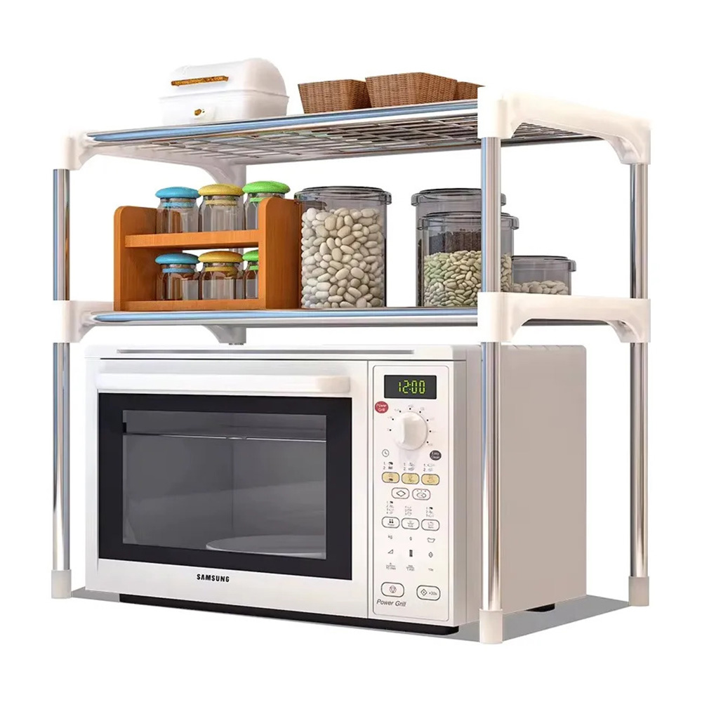 Organizá y optimizá tu cocina con este práctico rack organizador ajustable para microondas, ideal para aprovechar al máximo el espacio disponible. Su diseño moderno y funcional permite colocar el microondas en la parte inferior y utilizar los estantes superiores para almacenar frascos, condimentos, utensilios y otros accesorios de uso diario.