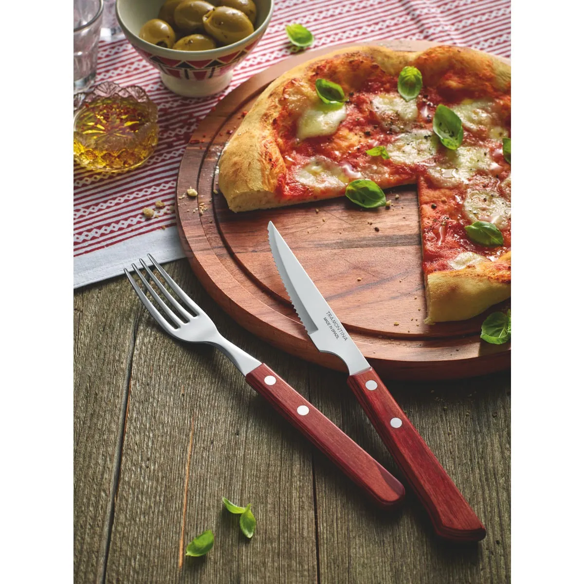 Lúzcase con el asado y con el servicio de mesa con el juego de cubiertos para asado Tramontina de acero inoxidable con mango rojo Polywood, 12 piezas. Un juego completo de la línea Churrasco que ofrece cuchillos y tenedores con láminas de acero inoxidable y mangos de madera tratada Polywood resistentes a impactos y altas temperaturas, llevando belleza a la mesa, además de alta calidad y durabilidad. La elección ideal para los que desean que todos puedan tener una excelente experiencia en el momento de apreciar un buen asado. El juego contiene 6 cuchillos para asado 4″, 6 tenedores de mesa.