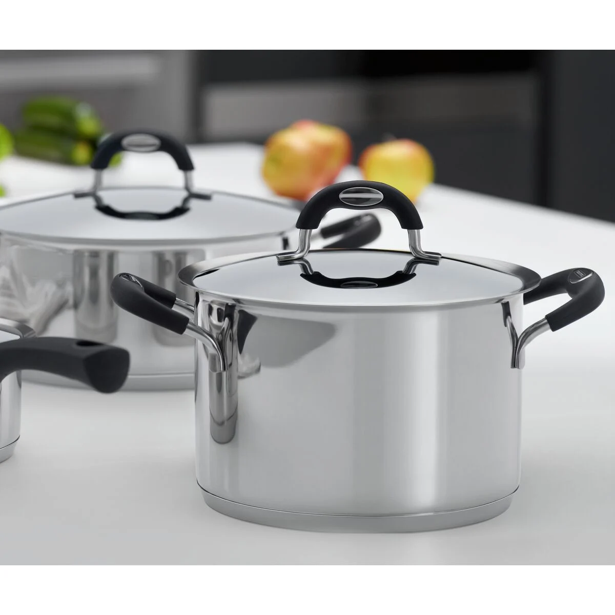 Ahorrar tiempo y energía: el secreto está en el fondo triple (acero inoxidable + aluminio + acero inoxidable), que distribuye el calor uniformemente, proporcionando una cocción más rápida. Por eso, puede mantenerse el fuego bajo durante toda la preparación y así ahorrar energía.