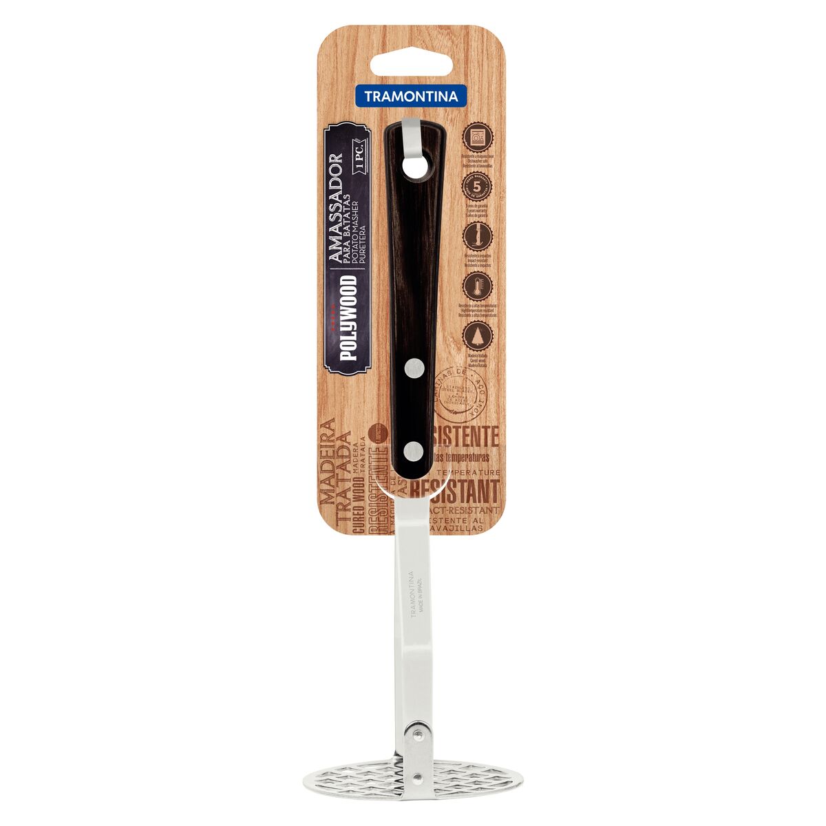 Pisapapas Tramontina con Lámina en Acero Inoxidable y Mango en Madera Tratada Polywood Castaño