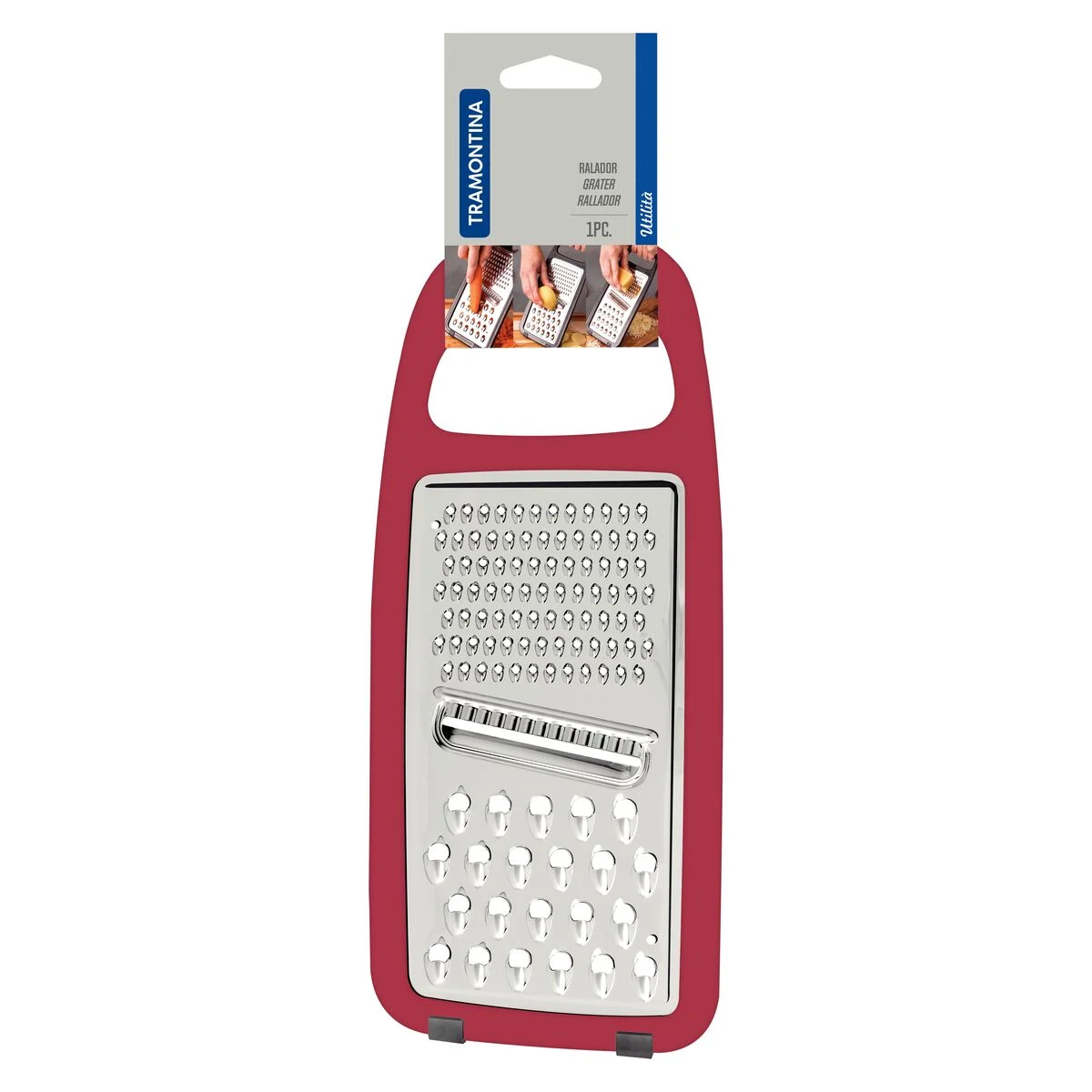 Rallador Tramontina Utilitá En Acero Inoxidable Goma Rojo