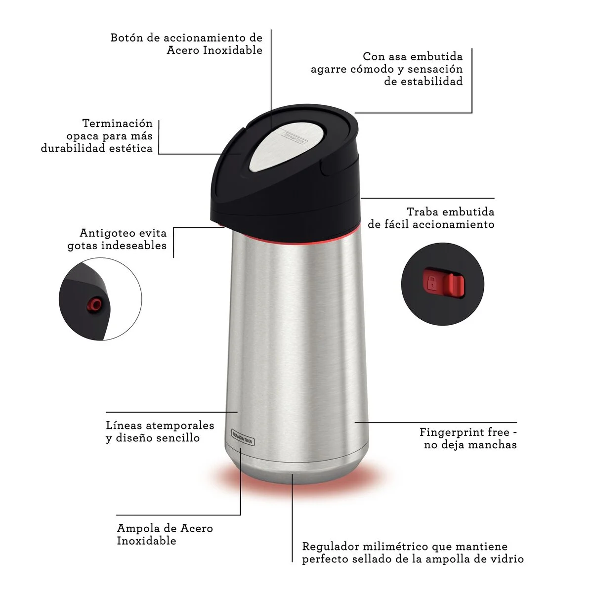 Sistema antigoteo, evita gotas indeseadas después de servir.