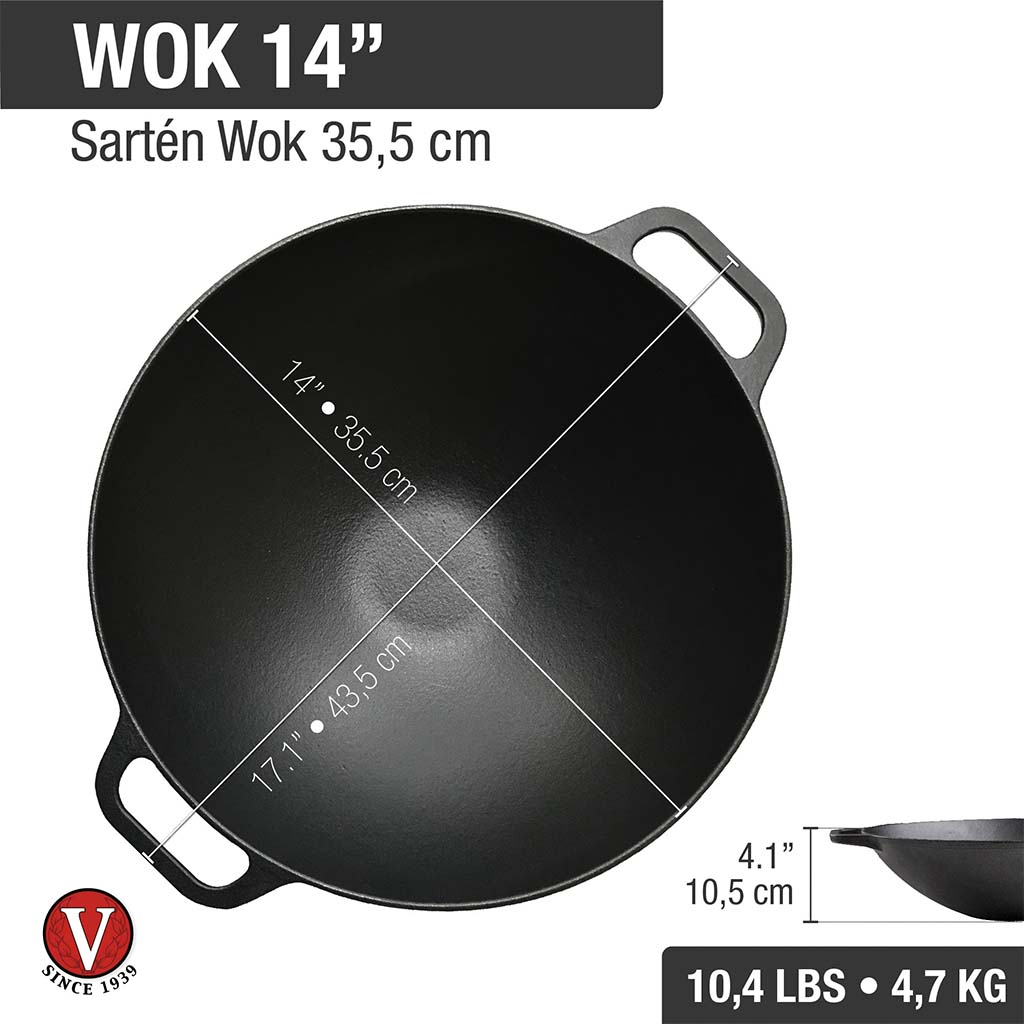 Wok De Hierro Esmaltado Victoria Con Asas 35 Cm 6 Litros
