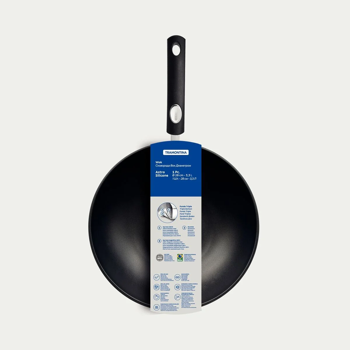Wok Tramontina Silicone Induccion Triple Fondo 28 CM